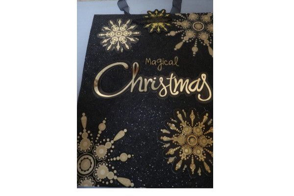 XMAS BAG BLACK WITH GOLD SNOWFLAKE Xmas Gift Bag Black Glitter Snow Flake SKU: XPL24 Login to see the prices Description BLACK XMAS BAG WITH GOLD SNOW FLAKE