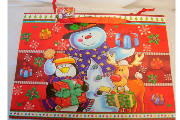 XMAS BAG SNOWMAN AND REINDEER Snowman Reindeer And Penguin 3d Bag 36x26 SKU: XGBHU161M Login to see the prices Description XMAS GIFT BAG SNOWMAN AND REINDEER AND PENUIN