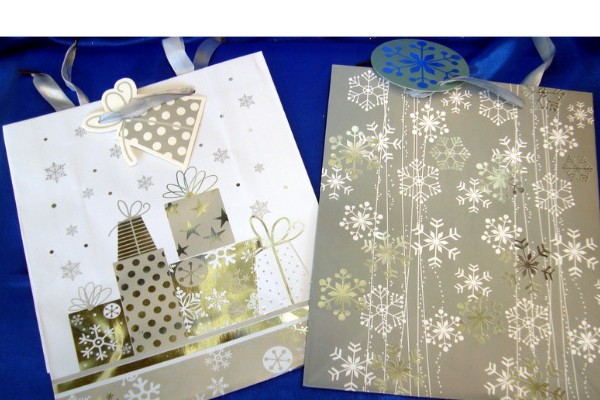XMAS GIFT BAG 2 ASSORTED SNOWFLAKE AND PRESANTS Lg Gift Bag Silver Snow Flakes Or White With Silver Presents 26x33cm SKU: XGBGAV328 Login to see the prices Description X 2 ASSORTED DESIGNS SNOWFLAKE AND XMAS PRESENTS GIFT BAG MED SIZE