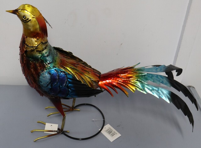 METAL PHESANT GARDEN ORNAMENT WITH BLUE TAIL FEATHER SKU: P8318 Login to see the prices Description 52x17x35